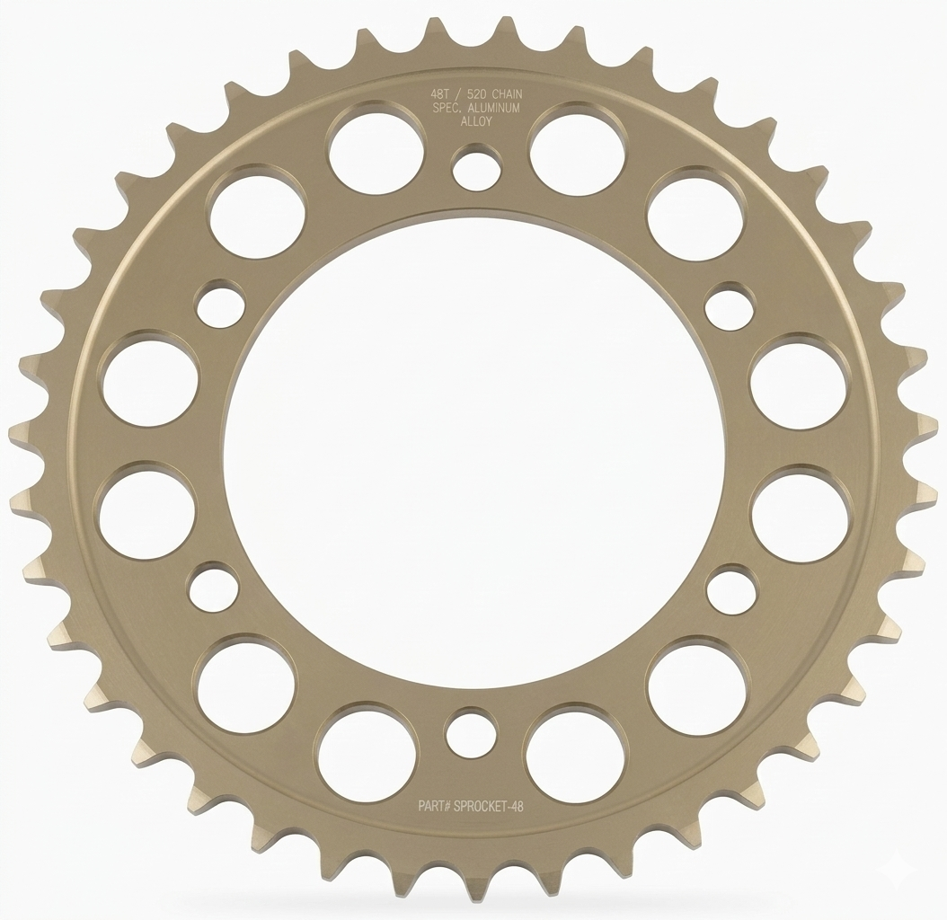 チェーンに噛んでいる前後のギア。チェーンが延びていくと同時に摩耗していき、歯と歯の間隔が開き、歯の山が徐々になだらかになっていき最終的にはチェーンが滑る状態に至る。純正は前後とも鉄製だが、金色などにアルマイト加工されているリアスプロケットが販売されており、多くはアルミ製である。尚、フロントスプロケットは鉄製以外販売されていない。リアスプロケットを社外品のアルミ製にすることで、バネ下重量(サスペンションより下側部品重量)の低減となり、寝かし込みや切り返し等の車体の運動性能の向上になる反面、アルミ製は鉄製に比べ価格が高く、かつライフも1/2~1/3程度と短い。