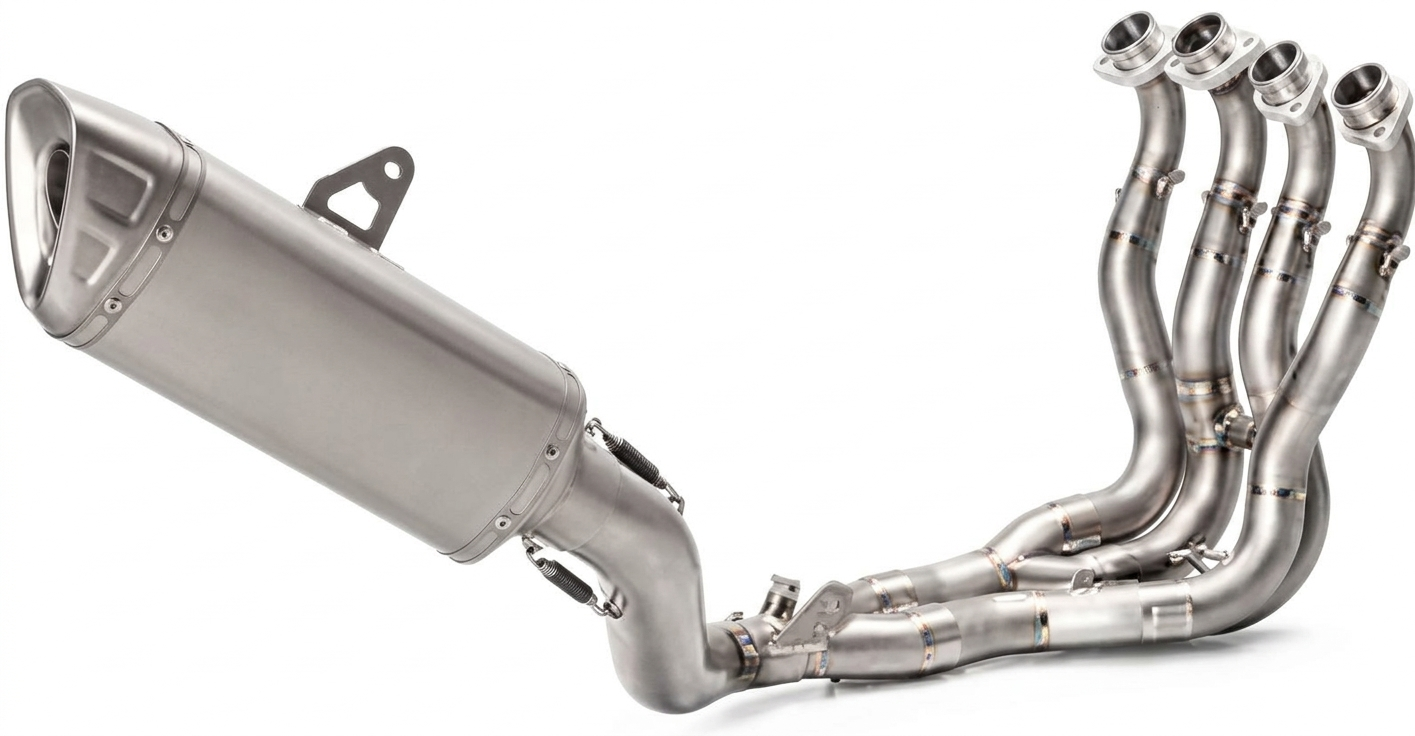 エンジンにはマフラーと呼ばれる排気管が取り付けてある。マフラーは、エンジン内で爆発させた燃焼ガスを冷まし、消音し、更にエンジン性能の特徴をコントロールするという役割がある。マフラーは大きく分けて、エンジンの排気ポートに取り付けられたフランジ部分からサイレンサーとの結合部までの「エギゾーストパイプ(通称エキパイ)」と、サイレンサー(消音器)とに分けられる。エギゾーストパイプ部分は鉄・ステンレス・チタンなどの金属パイプを曲げて造られていて、エンジンの気筒数やレイアウト(V型や直列など)によって大きく形状が異なる。また、各気筒の長さを揃えたり、各気筒からのパイプをどのように集合させるか、によってエンジンの出力特性さえも変わってくる。例えば、直列4気筒エンジンの場合、エンジンから4本出てきたエキパイを、一旦左右の2気筒ずつで集合させ、その後に1本にまとめる4in2in1と呼ばれる集合方法は、低回転でのトルクアップが期待できる。一方で、4本を1本にまとめる4in1方式は、高回転での抜けの良さから最高出力アップや吹け上がりの鋭さが期待できる。
